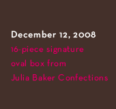 There’s nothing like a lavish box of chocolates to put a smile on someone’s face. Our fourth holiday gift recommendation and this week’s Baking Friday prize is the luxurious 16-piece Signature Oval Box of chocolates from Julia Baker Confections.