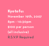 Shochu, a Japanese distilled liquor, can be made from flavors as wide ranging as rice, wheat, potato, sesame, wasabi and sugar cane. Kyotofu owners, Michael Berl and Nicole Bermensolo, and Cravings’ Cheng Sisters have paired some of these deliciously strong spirits with an elegant dinner menu composed by Chef Magdalena Wong. Plus, we’ll start the event with some of Kyotofu’s luscious signature shochu cocktails while you mingle with the crowd!