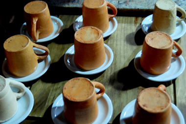 Photographs of moqueca and clay cups by Luciane Stocco.