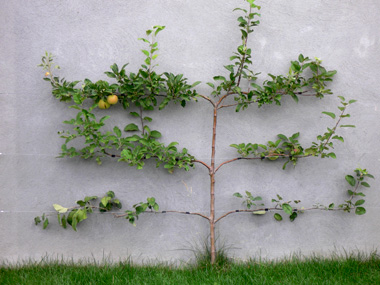 This gorgeous apple tree adorning the wall at the entrance of Black Hill Estate Winery in Oliver, British Columbia, has a different pomme variety grafted onto each branch and is trellised to resemble grape vines.