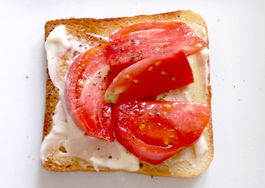 2. A tomato sandwich I had at the local prepared food store, Breadzilla. I made my version today with brioche bread from Eli’s (available at Whole Foods) that I toasted. I spread it with mayonnaise and topped it with fresh heirloom tomatoes I had picked up at the famers’ market in Union Square this weekend. Then I sprinkled on sea salt and ground pepper. That’s it. You’d think you’d miss bacon and lettuce, but try it and you’ll see that this sandwich can stand up to a BLT!
