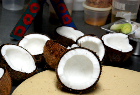 While researching coconut foods, I was invited by Amy Besa, co-owner of Filipino restaurant, Cendrillon, to learn how to make fresh-squeezed coconut milk.
