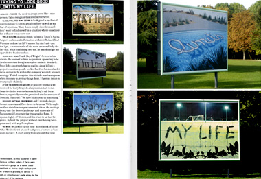 Taking it one step further than keeping these as personal reminders, Sagmeister enlisted the support of his clients to transform the maxims into typographic art ranging from words spelled out with chopped up pieces of hot dog to larger-than-life inflatable monkeys holding banners on the streets of Scotland. The creativity is astounding, but what I admire most is his lack of inhibition in pursuing crazy ideas. In “Over Time I Get Used To Everything And Start Taking It For Granted,” Sagmeister wanted to spell the word “it” with real bees. So he drew the word on his chest with queen bee pheromone, honey and brown sugar, prompting half a hive of bees onto his chest. The bees should have been attracted to the pheromone, but they did not do what was expected of them, so the beekeeper thrust them on Sagmeister and then tried to brush them off with a broom. Instead of spelling “it” with bees, he ended up with seven bee stings. Though the project didn’t yield the anticipated results, it revealed that the creative process is sometimes more interesting than the outcome. And like any life lesson, the experience was not wasted; in the end, he had a very amusing story to tell.