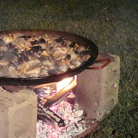 well, it was our first time cooking the paella outdoors and it took a lot longer than expected. everyone was ravenous.