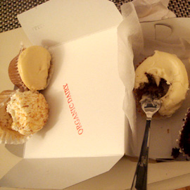 Remnants from a cupcake tasting for Cyn’s picnic. Vanilla/vanilla from Chikalicious took the prize, though coconut is also delicious. Butter lane’s banana w/ cream cheese vanilla bean frosting came in close.