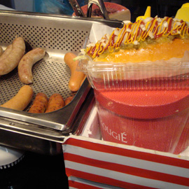 Still at Breeze’s supermarket, they have a hot dog section, where you can choose from a variety of American franks, different German sausages, and condiments.