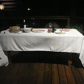 i live for dinner parties. here’s a summer outdoor dinner on the deck, in the dark. how atmospheric!