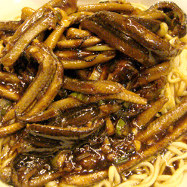 I mentioned carbs at Yin Yi. Well, our family does NOT like to choose between dishes so we always get everything. That means, we order about four noodles, dumplings, and whatever else we want, enough to feed eight. Here are the famous Shanghainese eel noodles. You can order it dry or wet (soup noodles). It tastes better than it looks!