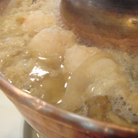 The beauty of the hot pot is that you can order as few or as many things as you want and just adding it to the mix. These shrimp balls were a good start.