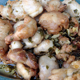 These garlic sautéed sweetbreads were absolutely delicious with a beer on a warm day in Madrid.