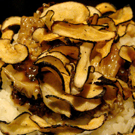 Though I love all the intricately prepared courses at Kajitsu, I love the final course of rice and pickles. This month, it’s gobo (burdock root) chips topped steamed rice with morel mushrooms.