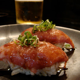 Honolulu’s Sushi Sasabune’s signature dish is their negitoro — chopped up toro with scallions. It’s just amazing how fresh their fish is. With a glass of cold beer to accompany, life couldn’t get better!