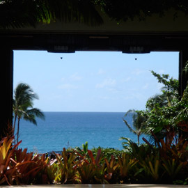 The Grand Hyatt in Kauai has a very impressive property that spans 52 acres. When you enter the lobby, you are greeted by this spectacular ocean view. Really unbelievable!