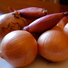 Onions and shallots hanging out together before the Thanksgiving meal. These shallots are actually some type of onion, a tad big to be shallots but still worked just fine.