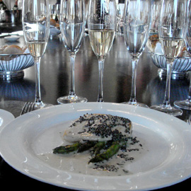 At a recent Perrier-Jouët Fleur de Champagne prestige cuvée portfolio tasting, I was smitten with the entire PJ line up, including the 2000 blanc de blancs. The tasting took place at the Soho House, and the 2000 blanc de blancs was perfectly paired with a braised turbot and caviar cream sauce. Decadently delicious!