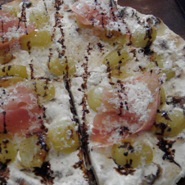 The pizetta at Gusto is a light, airy and soft flat bread. This one with fresh ricotta cheese, roasted grapes, prosciutto & aged balsamic is Cyn’s favorite. The sweetness of the fresh grapes and aged balsamic is a nice touch to balance the savory prosciutto.