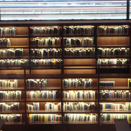 The library is on a lower floor but the glass windows on the ground floor give a beautiful view of this wonderful resource.