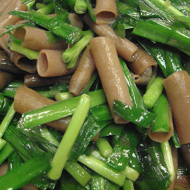 Even though I’m Chinese and grew up in Taiwan, I’m new to sea intestines. Been trying to look it up but still not sure what they are. At M&T, they serve it with Chinese chives. The sea intestines look like penne pasta but they are more rubbery and chewy.