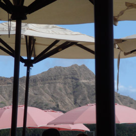 Here’s the view of Diamond Head from the Mai Tai Bar at Royal Hawaiian. Everything at Royal Hawaiian is pink, and I love these signature umbrellas, too!
