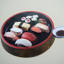 Each year, I receive fewer and fewer cards, as we become more and more immersed in the digital age. But every year around this time, I can count on my friend, Nakayama-san, to send me some super cute and funny birthday card from Japan. I just received this sushi birthday card the other day. It totally puts a smile on my face, not only because I love sushi, but the hidden messages are an even greater treat! (See next image!)