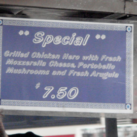 Tony’s street cart at the corner of 62nd and Madison. I always go for the cheeseburger, but on a recent visit I noticed that he now has daily specials. I still enjoyed my burger but the special was good, too!