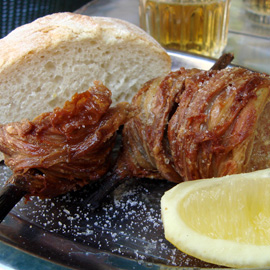 These deep fried skewered lamb intestines are crispy on the outside and tender inside. Very special!