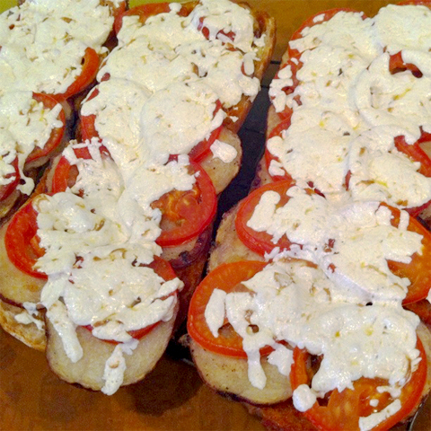 Even though Once Upon a Tart calls this a bruschetta, I prefer to refer to it as a “potato pizza.” Smoked Mozzarella is melted on slices of tomatoes and Red Bliss potatoes atop a copious slice of bread with fresh tomato paste. Even though the bruschetta is vegetarian, the smoky flavor of the Mozzarella makes it seem like there’s bacon or pancetta — a plus from my perspective. This is an alternative type of pizza but a viable and healthier choice for lunch or a snack.