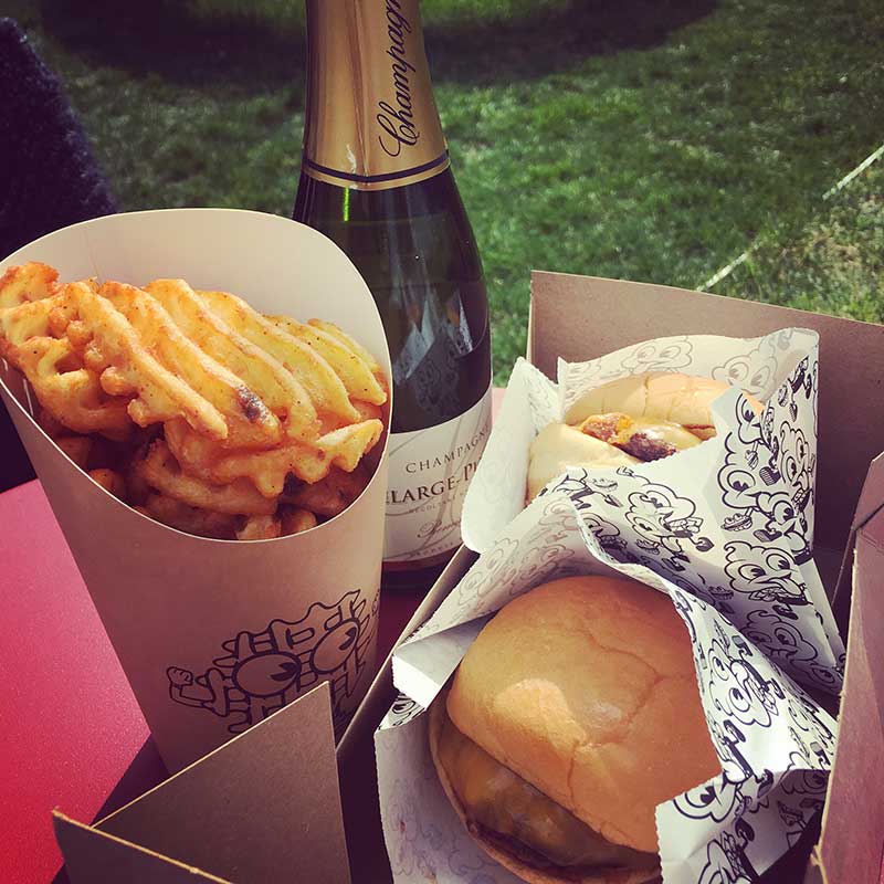 On Cyn’s last day in NYC, we celebrated with champagne & burgers. Yes, Mister Dips — the Airstream trailer at Vale Park at the William Vale Hotel that serves burgers, fries, and soft-serve — is open for the season!
