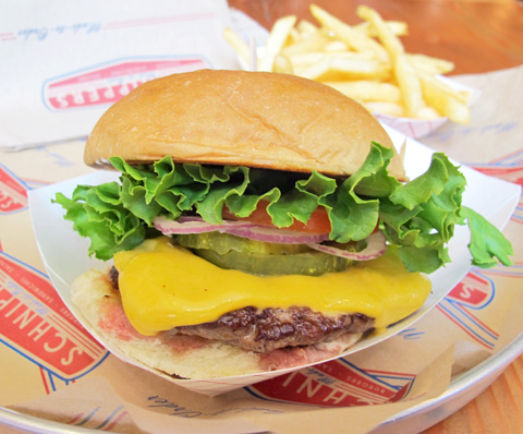 The Schnipper brothers, Jonathan and Andrew, are passionate food lovers who first founded Hale and Hearty Soups and now are spreading the love of burgers at Schnipper’s Quality Kitchen. I’m a fan of the basic cheeseburger. The patty, a custom Pat LaFrieda blend of chuck, brisket and short rib from Creekstone Farms, is topped with lettuce, tomato, pickles, red onion and American cheese on a bun. All the ingredients are fresh and juicy, so while it’s flavorful, there’s no heavy aftertaste. At just 4 ounces (at the 23rd Street location; the cheeseburger at 41st Street is 5.5 ounces) the cheeseburger is easily manageable, allowing me to try other goodies from the diverse menu including sloppy joes, mac and cheese and salads. Like neighboring Shake Shack, Schnipper’s serves beer and wine, which makes this fast food experience even more enjoyable. I love the overall experience — a fun concept, large space, delicious food and good service. Best of all, I’m already enjoying my meal while folks are still waiting in line a block over in Madison Square Park.