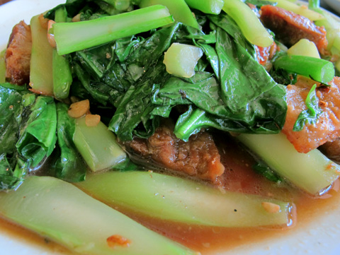 This is one of those dishes that you see on almost every table at SriPraPhai. The sautéed Chinese broccoli is crisp and fresh, while the pork belly adds richness both in flavor and texture. The pork belly is so incredibly crispy because it’s first baked and then deep-fried. This dish is so flavorful that it’s best eaten with rice.