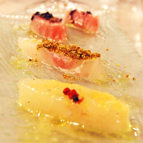 What exactly is Eataly? Think of a gourmet food store (on the scale of something like Julius Meinl in Vienna) multi-leveled and stocked with gourmet goodies. While Eataly does focus on Italian food, its fresh produce is predominantly American. I reveled in all these distractions, but still managed to make it to Il Pesce with my appetite intact. I ordered the crudo trio (a taste of fluke, halibut and yellowtail) as well as the chef’s selection of grilled shrimp and lobster. Lunch was such a glorious treat: two glasses of wine, all that delicious seafood, and the wonderful company of other enthusiastic food lovers at the bar.