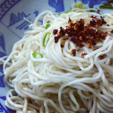 Hua Lin is an old school noodle institution that specializes in “dry noodles” — the most basic of noodles. There are only three types of noodles on the menu: dry, soup and meat sauce. Dry in English is a bit of a misnomer, just meaning that they’re not soup noodles. The noodles are seasoned with a little pork lard, soy sauce, vinegar and MSG. (You can request no MSG, which is my preference.) At each table, there are condiments of soy sauce, vinegar, chili oil and red chilies, which you can add to suit your preference. You might be thinking that this all sounds very plain and simple, and indeed it is, but no one does it better. Hua Lin offers two side dishes: tofu skins with daikon and crispy dried fish with chilies. Both of these make the noodles particularly tasty. The simplicity is what makes this place an institution that attracts locals and foodies alike. Hua Lin is only open Monday to Friday from 6:30 am to 2 pm. The proprietors are particular in running the shop their way; it’s not a place you go for service, but it is definitely charming in its own way.