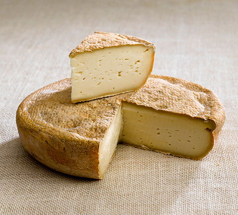 From there take a turn to the more obscure, heading south to the Pyrenees for the aged tommes, many of which get a salt water washing for a pale orange rind and savory, almost meaty finish. I recommend Tomme de Bethmale or Tomme d’Aydius. A chewy fruit and nut-laden flatbread softens the gentle funk.