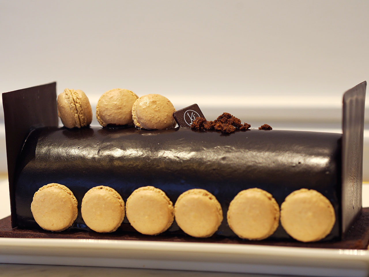For dessert, there’s nothing better to put you in the spirit of Christmas than bûches de Noël, and Maison Kayser has three flavors: Kayser (dark chocolate), berry, and marrons (chestnut), available in regular size ($39) and a mini individual portion ($6.50). I love chestnut desserts in wintertime, and though the chestnut and cognac flavors in the traditionally rolled bûche marrons are a chestnut lover’s dream, this year’s bûche Kayser takes the prize. A modern interpretation of the Yule log, the Kayser bûche has a vanilla crème brûlée center surrounded by dark chocolate mousse topped with a dark chocolate glaze. It sits on a chocolate sablé with hints of sea salt and is accented with almond macarons. End your holiday meal on a high note with this exquisite dark chocolate dessert.