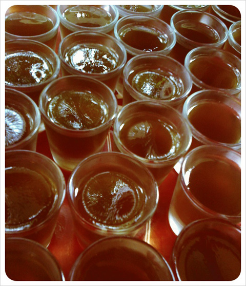 Long Island Iced Tea was the flavor of the day when we visited. Two things struck me immediately: the firmness of the Jello and the intensity of the flavor and alcohol. This Jello is all grown up.