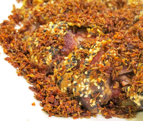 Fu Run specializes in Northeast-style Chinese cuisine, which tends to include pickled foods, lots of spices and heartier fare. You can’t go wrong ordering a daily special written in Chinese (ask the wait staff to translate), but Fu Run’s signature dish, the Muslim lamb chop, is not to be missed. The name is a misnomer, as they’re actually lamb ribs not chops, but the preparation is perfection. The ribs are laced with a little fat, which adds flavor, and are braised in a red rice sauce for three hours, which not only tenderizes the meat but also tints both meat and bone bright red. The ribs are then coated in a thin layer of breadcrumbs and black and white sesame seeds, which after deep frying becomes an incredibly light but crispy crust. Finally, the dish is dusted with pan-fried cumin and red chili until it is vibrant and flavorful. The amazing fragrance of the spices and meat that’s fall-off-the-bone tender is the reason why anyone who’s tasted this dish comes back for more — it’s that incredible!