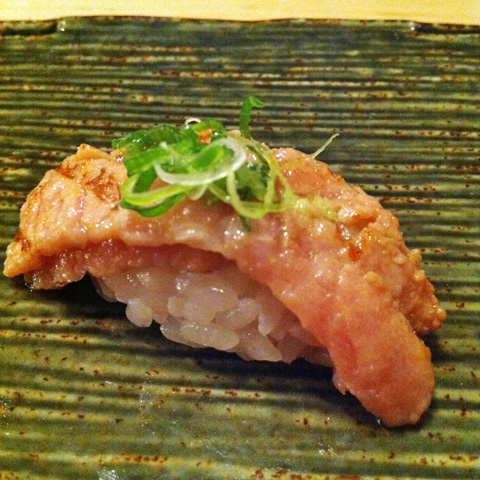 Neta is the new kid in town, but don’t be misled by its inconspicuous space on West 8th street or lack of signage; this sushi restaurant may be new but chefs Nick Kim and Jimmy Lau are Masa veterans, with years of experience and expertise under their belts. And the sushi is delicious. The chefs recommend the omakase (chef’s choice) meals at $95 or $135. You can also order à la carte, but currently there is no sushi omakase menu. As a sushi purist, I gravitate toward sushi rather than the small plates, but the omakase gives a good variety and balance of both. Each visit has presented some different experiences and dishes, such as starting off with a grilled piece of Spanish bottarga — the perfect beginning to a meal. To me, the highlight has been the signature grilled scallop with uni, garlic soy butter and lime. The nigiri sushi may seem smaller in size than at other sushi restaurants, but this is where the significance of “neta” — the sushi topping ingredients — comes in to play . A piece of the otoro can easily send you reeling for several hours, and the grilled suji (toro sinew) is flavorful and deliciously juicy. I also enjoy the ume-shiso (plum and perilla) sushi, as it’s almost like a palate cleanser. But let’s not forget about the negi-toro maki (toro and scallion roll) — it’s nice to end the meal on a high.
