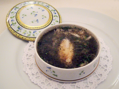 Hearty rustic fare is all the rage, and I’m for it. But sometimes you just want complex, many-layered flavors that have been harmonized to perfection by a brilliant palate with a light touch — a pointillist painting of a dish. Nothing exemplifies luxe eating so much as David Bouley’s porcini flan. A play on the Japanese egg custard known as chawan mushi, it begins with a richer, creamier version of that dish, topped with a porcini puree, then a jellied, herbaceous layer of Alaska Dungeness crab meat and kudzu-thickened dashi spiked with ginger and yuzu. Finally, a tender spear of claw meat floats on a whisper-thin layer of black truffle dashi. This plush pleasure arrives with flair, in a covered porcelain ramekin painted with tiny morning glories.