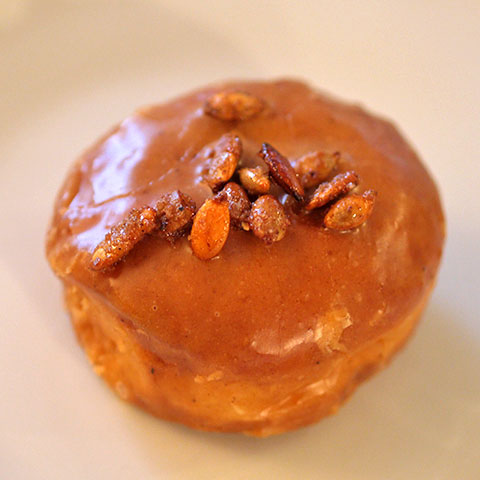 Pumpkin doughnuts have never been so relevant. This year, with Thanksgiving and Hanukkah overlapping, could there be a more perfect celebratory treat? While the Doughnut Plant has pumpkin doughnuts in three of its signature styles (yeast, cake and doughseed), we can’t resist the small, round pumpkin doughseeds. Filled with creamy pumpkin custard and dressed in a pumpkin glaze, these doughseeds are also topped with spiced pumpkin seeds. Each little morsel packs a spicy, pumpkiny punch, capturing the warmth of the holiday season.