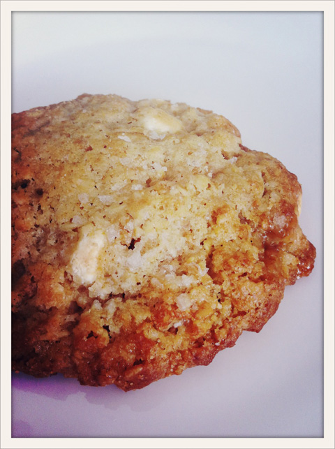 I’ve become hopelessly addicted to the salted oat cookies at Milk and Cookies. These cookies are soft and chewy, a blend of an oatmeal base with Rice Krispies, white chocolate and toffee, with Maldon sea salt sprinkled on top. The oatmeal and Rice Krispies give the cookie a texture that you can really bite into, and the white chocolate and toffee provide a blend of gooeyness and sweetness that is then counterbalanced by the sea salt. You get a bit of both savory and sweet in each bite, and for someone like me who doesn’t have much of a sweet tooth, it’s a very happy balance.