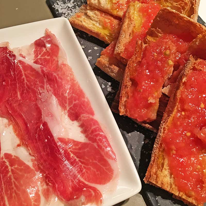 Narru was the newest and most modern restaurant we visited. It was also our first meal in San Sebastian, and it couldn’t have been more ideal. The restaurant is below ground, and the wood door entrance and minimalist décor reminded me of modern izakayas in Tokyo. We started the meal with jamon and pan con tomate, and for a second I thought that I would be deeply torn if I had to choose between sushi and jamon as my favorite food. Luckily, I don’t have to choose, but suffice it to say, the jamon was an epic start to the meal, and the experience only got better with each dish. My favorite offering was the creamy seafood rice: the first bite was extraordinary — the flavor of the sea permeated my palate, so much so that I felt like I had taken a bite of fresh ocean. And the contrasting textures of the creamy rice with the crispy soccorat were in perfect proportion. The table next to us was a gathering of the chef’s relatives, enjoying what seemed like a common gathering for a family meal so welcoming and friendly that it piqued my interest, so I asked about each dish they were having. Unsurprisingly, many of the dishes were off-the-menu. Our waiter was a darling young man who served us well; I also asked him about many other dishes that neighboring diners had, and he tried his best to translate. Narru is a neighborhood restaurant after my own heart — this experience was love at first meal.