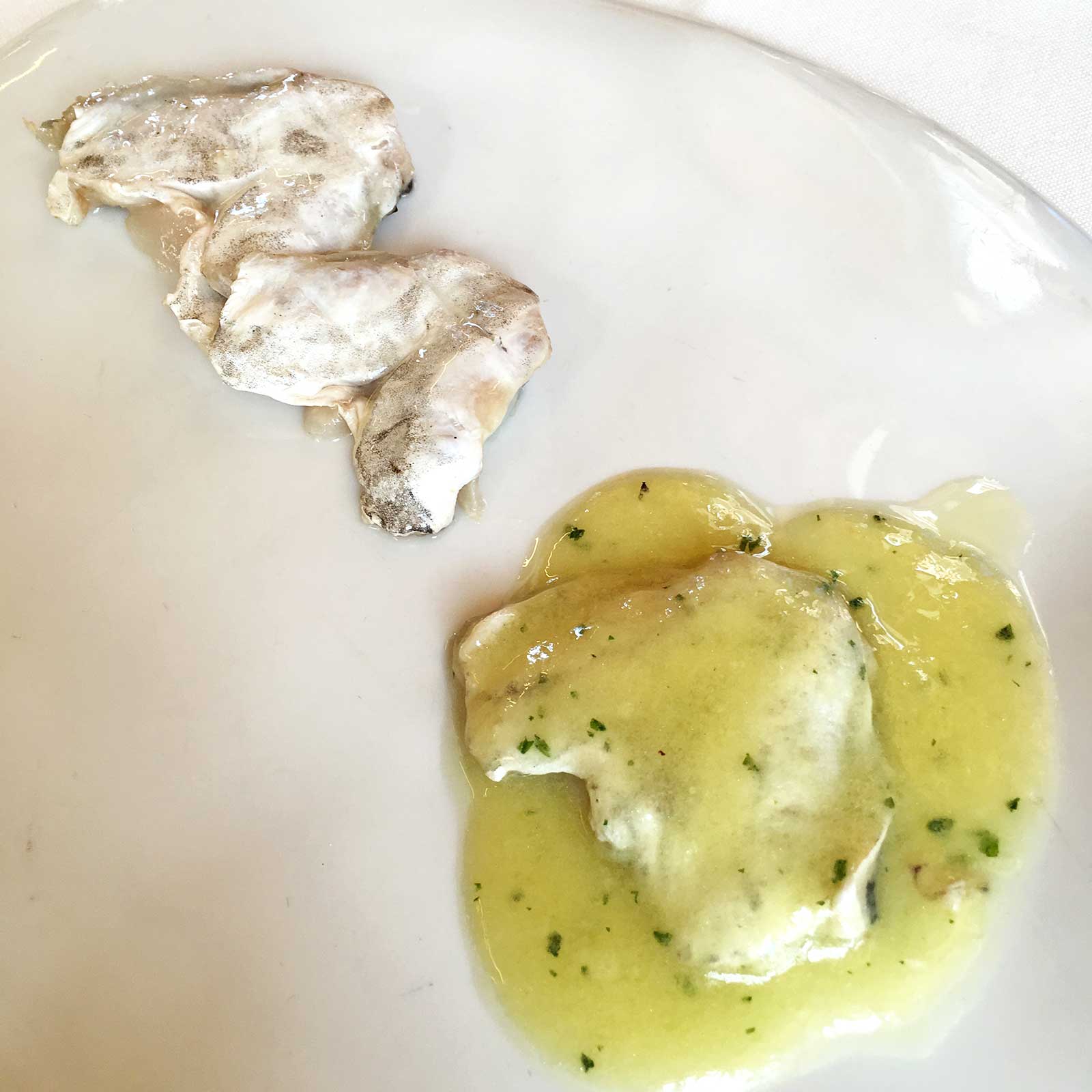 Elkano is located in Getaria, on the Bay of Biscay, a 45-minute drive from San Sebastian, but it is absolutely not to be missed. Known for its turbot, grilled whole outside the restaurant, Elkano is the holy grail of seafood experiences. The turbot and kokotxas prepared two ways — one plain grilled so you taste the fresh flavor of the fish itself, and the other in the traditional pil pil sauce — were beautiful, but I asked what was fresh that day, and the host/waiter recommended the squid prepared two ways. I will never forget the exceptional squid at Elkano. The first preparation was simply grilled in order to experience the freshness of the squid on its own merit, accompanied by squid ink sauce. The second was prepared with slow-cooked onions that were so sweet paired with the tender grilled squid that I was left speechless. Lunch was a gathering of gourmands from around the world who had traveled to indulge in the seafood feast. At one table, a group of young food-loving friends from Australia, England and the US were living it up pairing Salosse and other champagnes with their meal; I heard Russian and other languages spoken at other nearby tables. Getaria produces Txakoli, which is perfect with seafood, so while at the source, the pairing is a must-try. Also, go on a day that the Balenciaga Museum is open — it’s only a two-minute walk from the restaurant. And finally, a short drive to the Church of Zumaia (Ermita de San Telmo) with stunning views of the coast and lush green hills completes this perfect day trip!