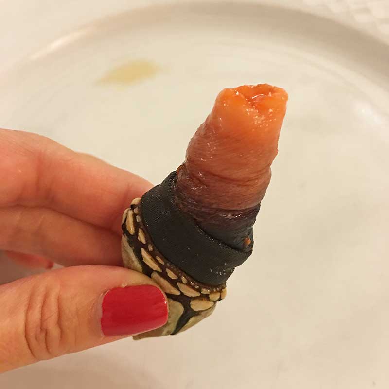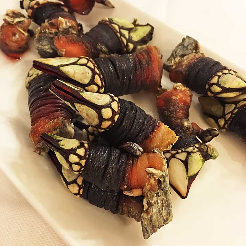 Ibai was the most local of the restaurants and my favorite meal of the trip. The restaurant is only open weekdays between 1-3pm, and inside there are only eight tables. A little mom-and-pop restaurant that serves the most amazing food, Ibai has no English menu and the staff speaks little English. From the kokotxas to the fresh gooseneck barnacles — crustaceans that cling to rocks positioned in strong crashing surf in Spain and Portugal, which luckily were in season — the ingredients spoke for themselves, and chef Alicio Garro’s preparations simply helped to bring out the natural flavors. I vividly remember the tables at lunch: a local couple to our left, a young American couple across from us (chefs Liz Johnson and Will Aghajanian), and a large group of young internationals, which was actually the same group of people I had spied at lunch the day before at Elkano. This time, I had the chance to chat with them a little more, as I noticed that they’d started the meal with a bottle of Lopez Tondonia White. A no-nonsense gem of a restaurant with little in the way of decor, Ibai offers cuisine that is both simple and meticulously prepared.