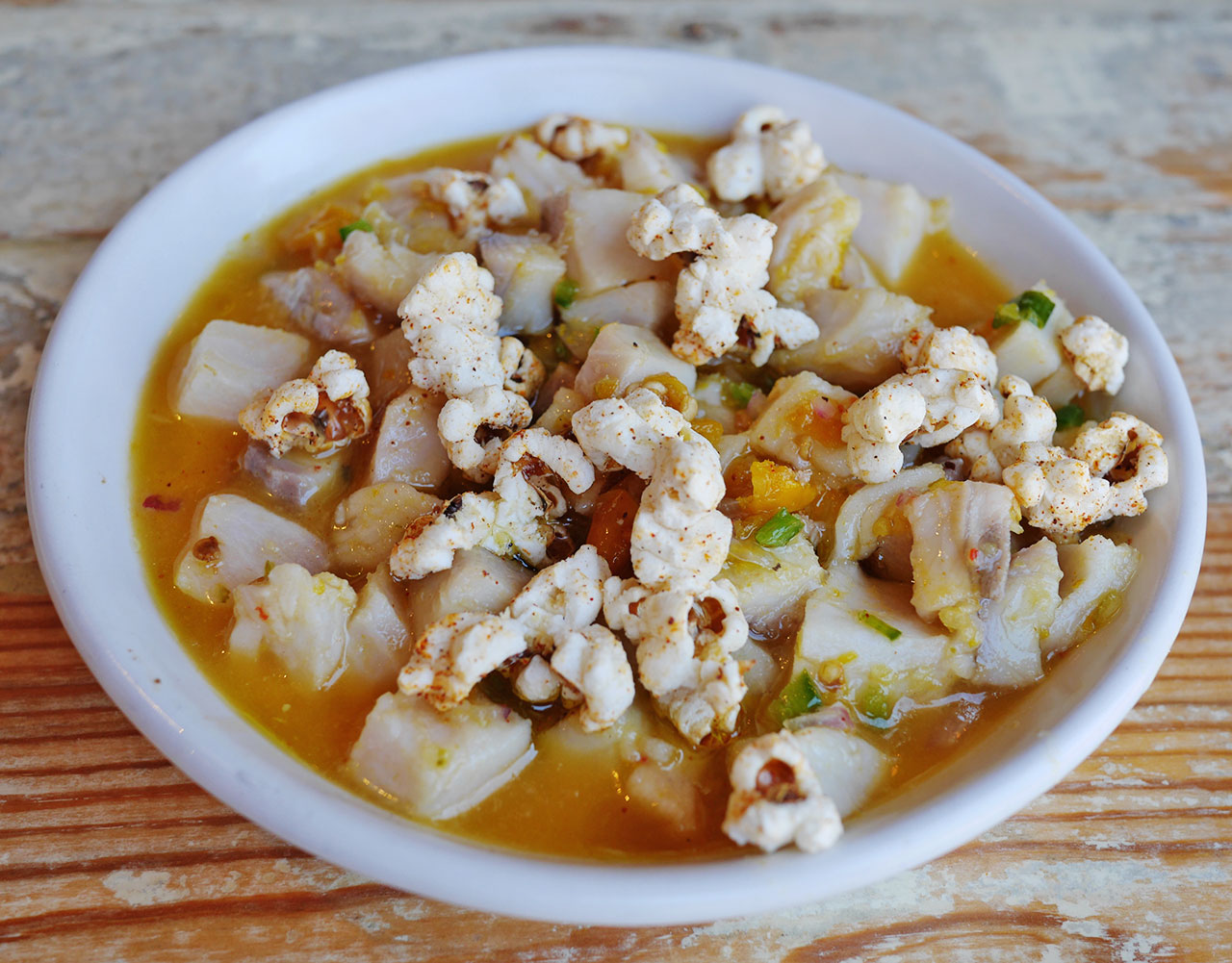The raw bar selection is the way to start. Look out for the raw fish specials like the marinated cobia, in a citrus and chili-based broth, served with a butterbean purée that balances the acidity. As a shrimp lover, the shrimp roll at Pêche was a true highlight — the best I’ve ever tasted. Its freshness comes from local Louisiana shrimp, typically brown shrimp, but this changes seasonally, as white shrimp makes an occasional appearance as well. The shrimp, combined with a mayonnaise, mustard and raw vegetable-based sauce, are served on a soft cream roll with shredded romaine lettuce.