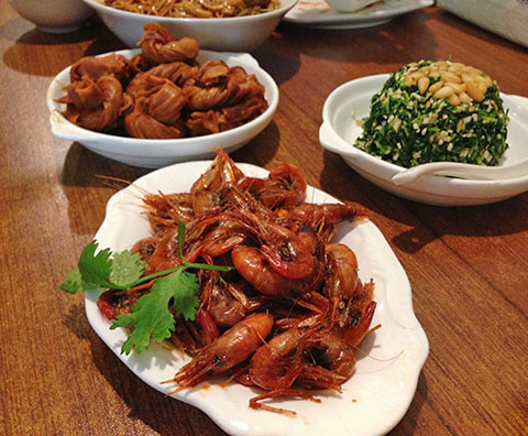 Jian Guo 328 is a casual eatery serving home-style Shanghainese food. The restaurant is small and narrow so seating is a bit cramped, and for lunch you’ll have to come early to avoid the wait, but I love coming here for all the Shanghainese dishes that I grew up eating; from deep-fried river shrimp to stinky tofu, the cuisine is prepared with care. Stinky tofu, usually either steamed or deep-fried, has always been a favorite of mine. At Jian Guo 328, they’ve wrapped pieces of stinky tofu in paper-thin yuba (tofu skins) and fried them, so you get the best of both worlds: a crispy exterior and a tender interior. Dip each bite in the accompanying spicy soy sauce and savor just one example of all the goodness that’s coming out Jian Guo’s kitchen.