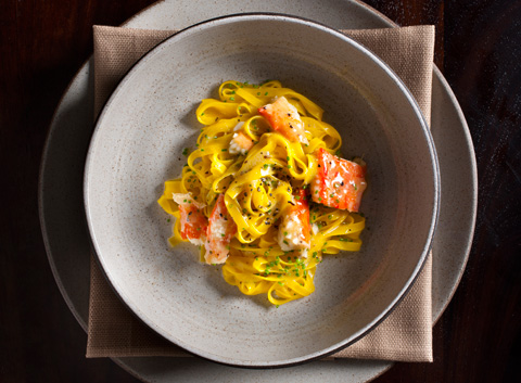It’s not surprising to learn that this is NoMad chef Daniel Humm’s favorite pasta dish, one that he makes at home regularly. It’s simple and no doubt a cinch to make, yet filled with plush textures and ingredients, not to mention almost narcotically pleasing flavors. It’s so plush, in fact, that my dining companion found it a little too rich. If your life seems wan and your palate in need of pampering, though, this is the dish for you. The house-made pasta, composed of egg yolk, flour and water, is elevated with the addition of saffron. The butter is French Beurremont 83 percent, the hunks of king crab fat and succulent, and the dash of Meyer lemon juice and sprinkle of black pepper the no-brainer finishing touches. If one were to argue that the deceptively simple secrets to Humm’s success are fresh ingredients and perfectly balanced flavors, this dish could be called up as Exhibit A.
