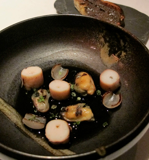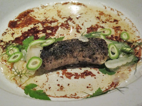 I was astonished by the eloquence of each dish — the texture of each ingredient, the balance and juxtaposition of flavor profiles. For example, consider all the potential challenges in the dish of grilled local mussels, octopus, truffle, lemon thyme and squid ink; the texture of both mussels and octopus must be perfect, and the strong flavors of truffle and lemon thyme could either fight one another or enhance the layers of the dish. The shellfish and octopus were rightly tender, and the aromas of truffle, lemon thyme and squid ink harmonized with remarkable subtlety.
